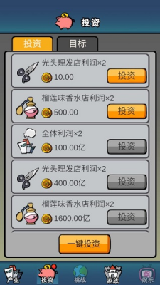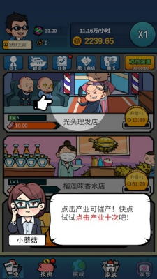 游戏设置超过30种特色产业模块,从基础服务行业到创新概念产业层层递进。玩家可经营传统理发店获取稳定现金流,也可投资研发榴莲香氛等猎奇产品开拓蓝海市场。当积累足够资本后,更可涉足影视投资、地产开发等重量级项目。