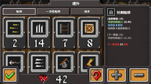 每场战役胜利可获取地脉结晶,用于永久提升陷阱基础属性或解锁特殊能力模块。成就系统包含30余项战略挑战目标,完成特定战术组合可激活隐藏符文。通过宝石镶嵌系统可定向强化陷阱的暴击概率或范围杀伤效果,打造个性化防御体系。