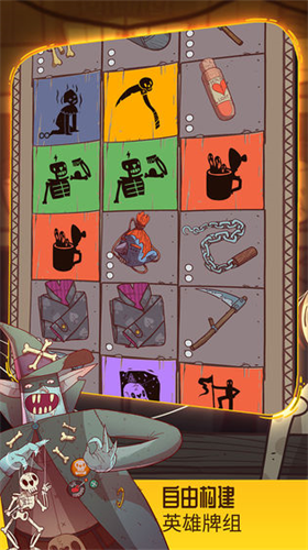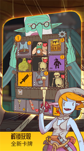 游戏采用动态九宫格战场设计,每次开局随机生成卡牌矩阵。玩家需通过策略性消除卡牌触发连锁反应:击败怪物获取金币、购买增益卡牌、激活特殊效果。独创的「卡牌重力系统」让每次操作都会引发布局变化,真正实现「走一步看三步」的策略体验。