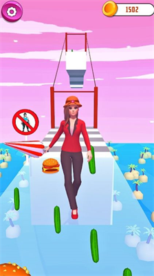 在横向卷轴赛道中,玩家需通过左右滑动控制角色移动轨迹,巧妙避开汉堡等高热量食物障碍,收集蔬菜水果维持角色体型。随着关卡推进,赛道会随机出现加速带、移动平台等特殊机关,考验玩家的即时反应与路线预判能力。每完成十个关卡可解锁新服装造型,个性化定制参赛形象。