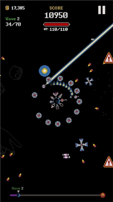 ▍像素狂魔:复古电子音效配上炫光粒子特效,开着振动反馈根本停不下来,这才是太空防御游戏的终极形态