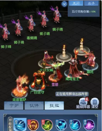 普通难度:建议采用状态叠加战术,通过燃烧与腐蚀效果持续削弱敌方。推荐配置观音提供治疗保障,搭配广目巡守控制战场,南海龙王与哪咤形成火系连携,火神女娲补充群体输出。