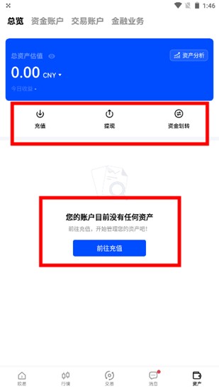 移动端用户安装应用后,在底部导航栏选择【资产管理】模块,IOS与Android系统界面布局保持统一。