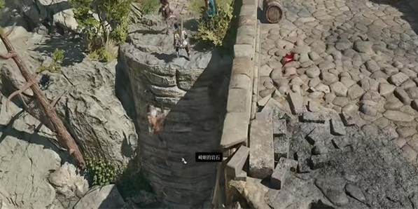 2、当发现断裂石桥地形时,注意观察桥体结构特征。断裂处宽度约15码,推荐使用羽落术或云雾形态等位移技能跨越。若队伍中有具备跳跃专长的角色,也可通过助跑跳跃方式抵达对岸。
